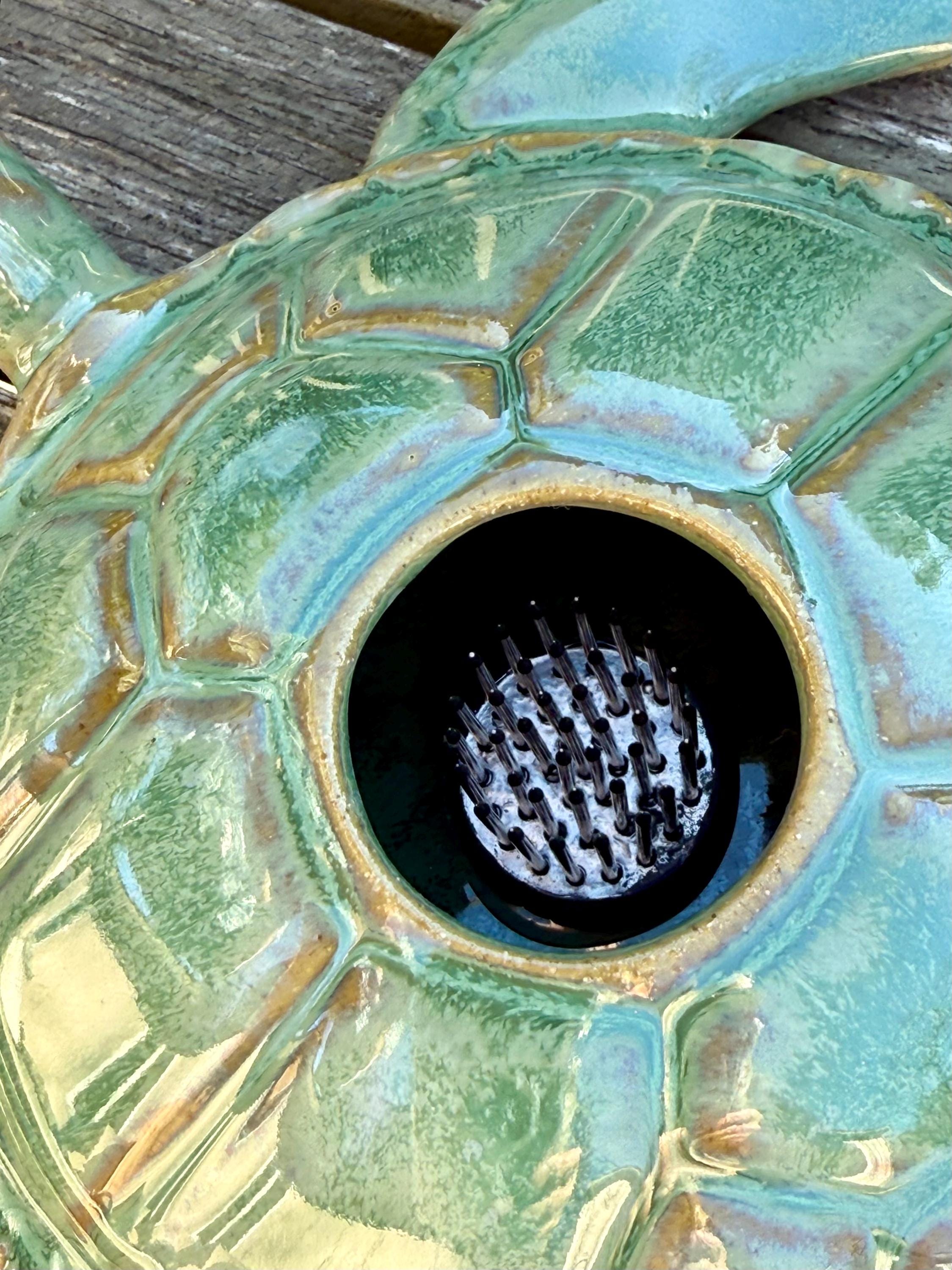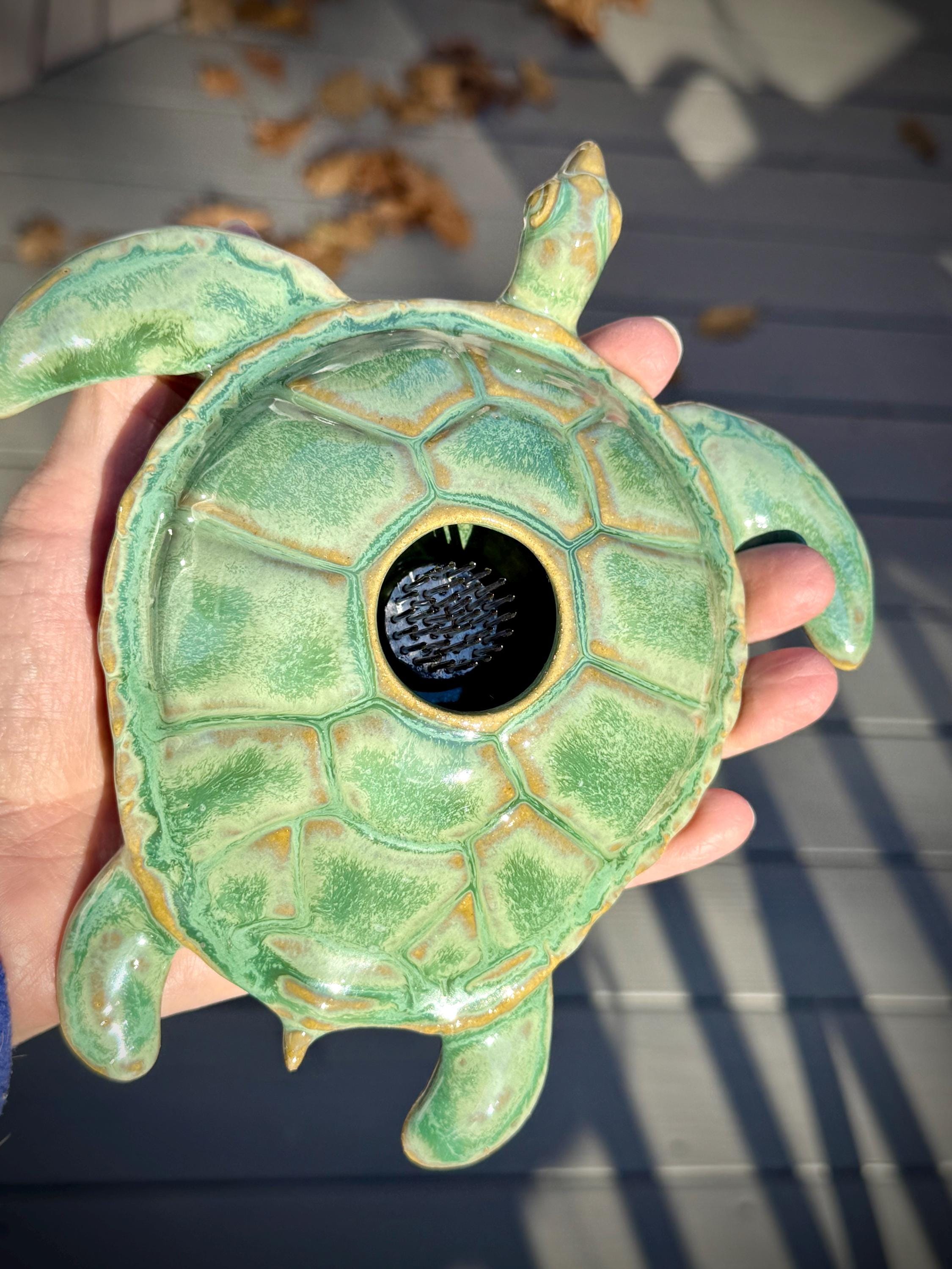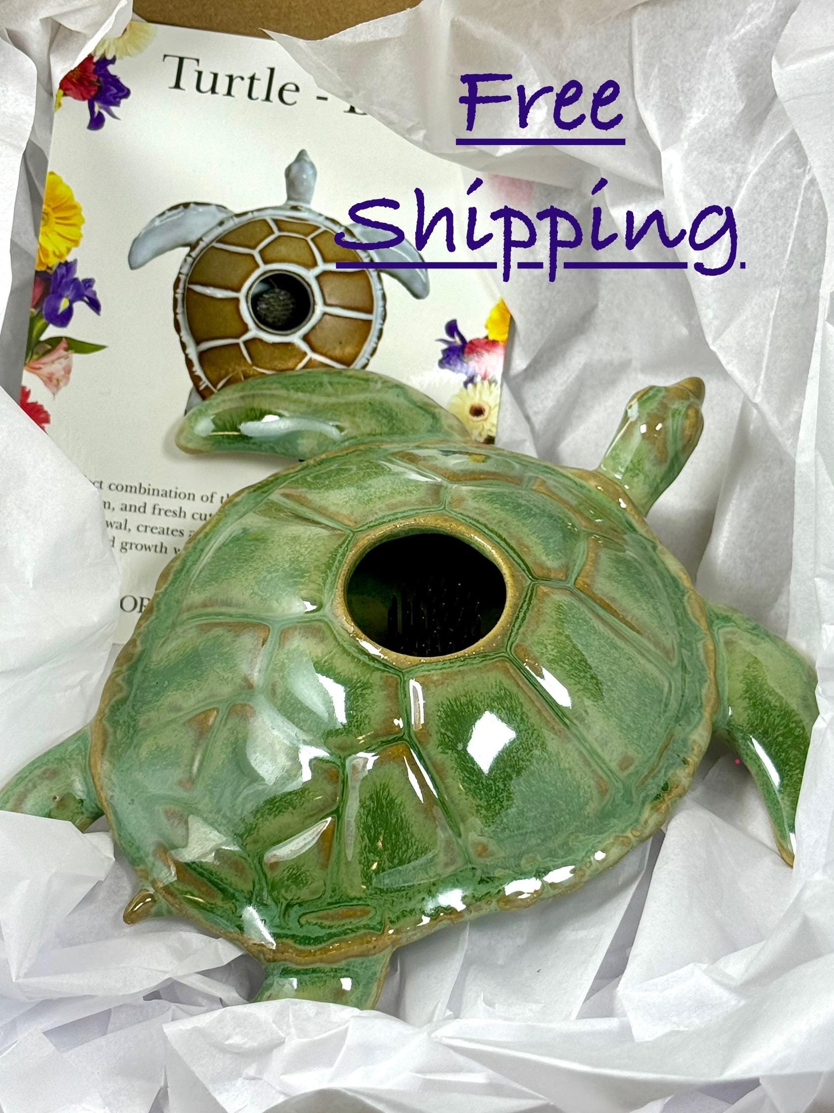 Ikebana, Sea Turtle Flower Vase, ceramic sea turtle sculpture for Flower Arranging, Pin frog, fresh cut flower centerpiece