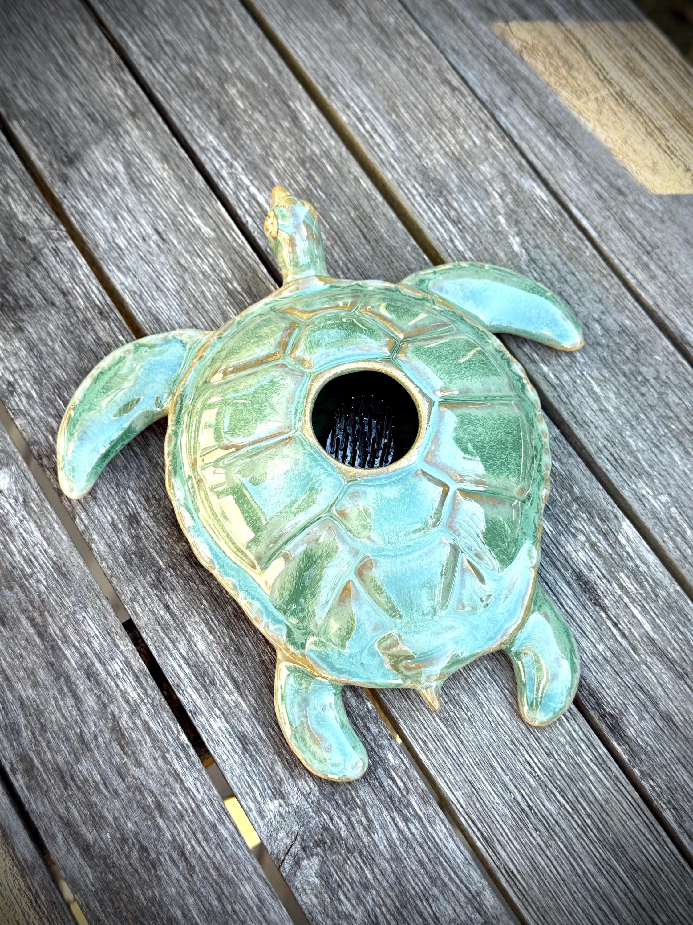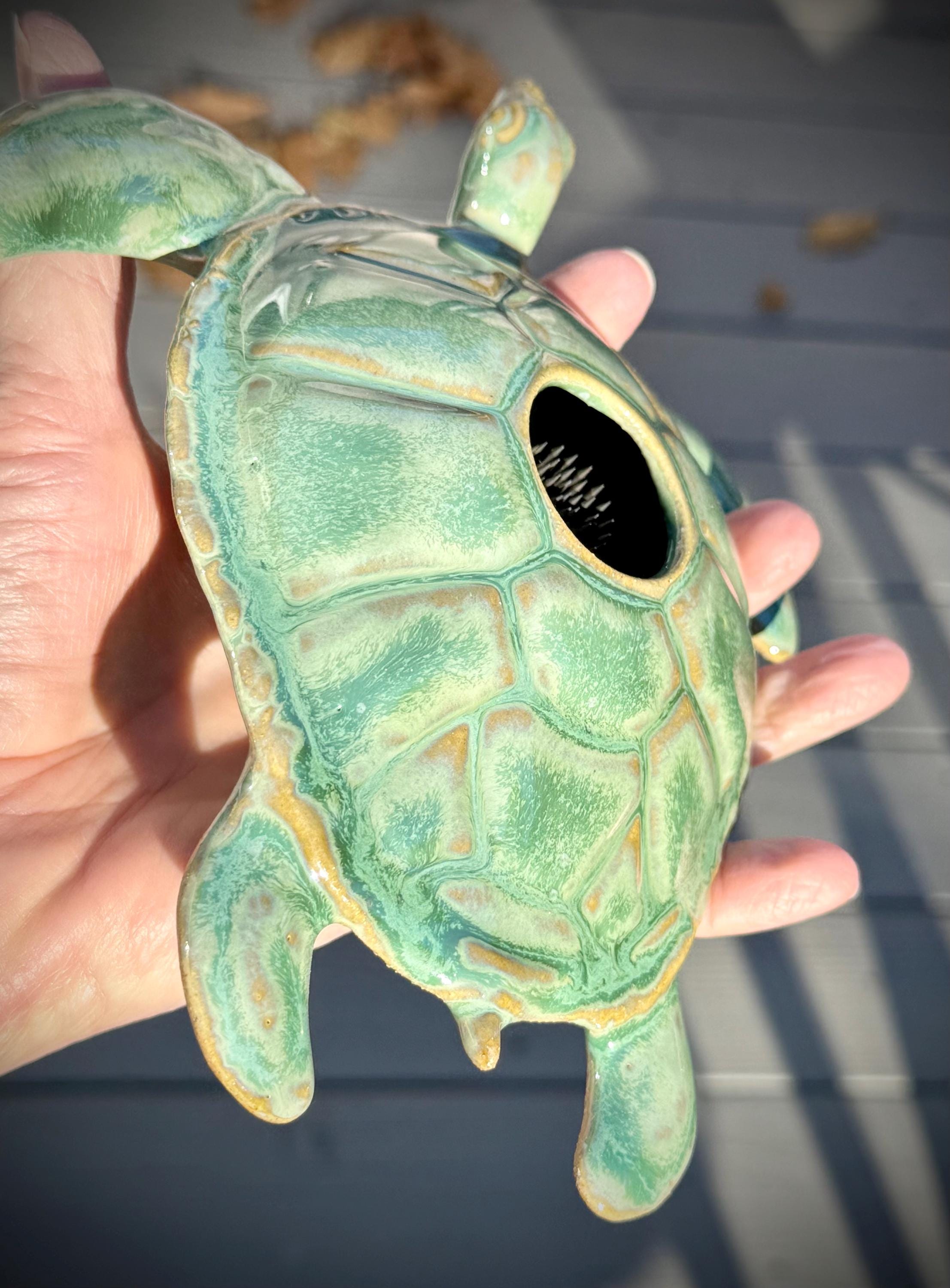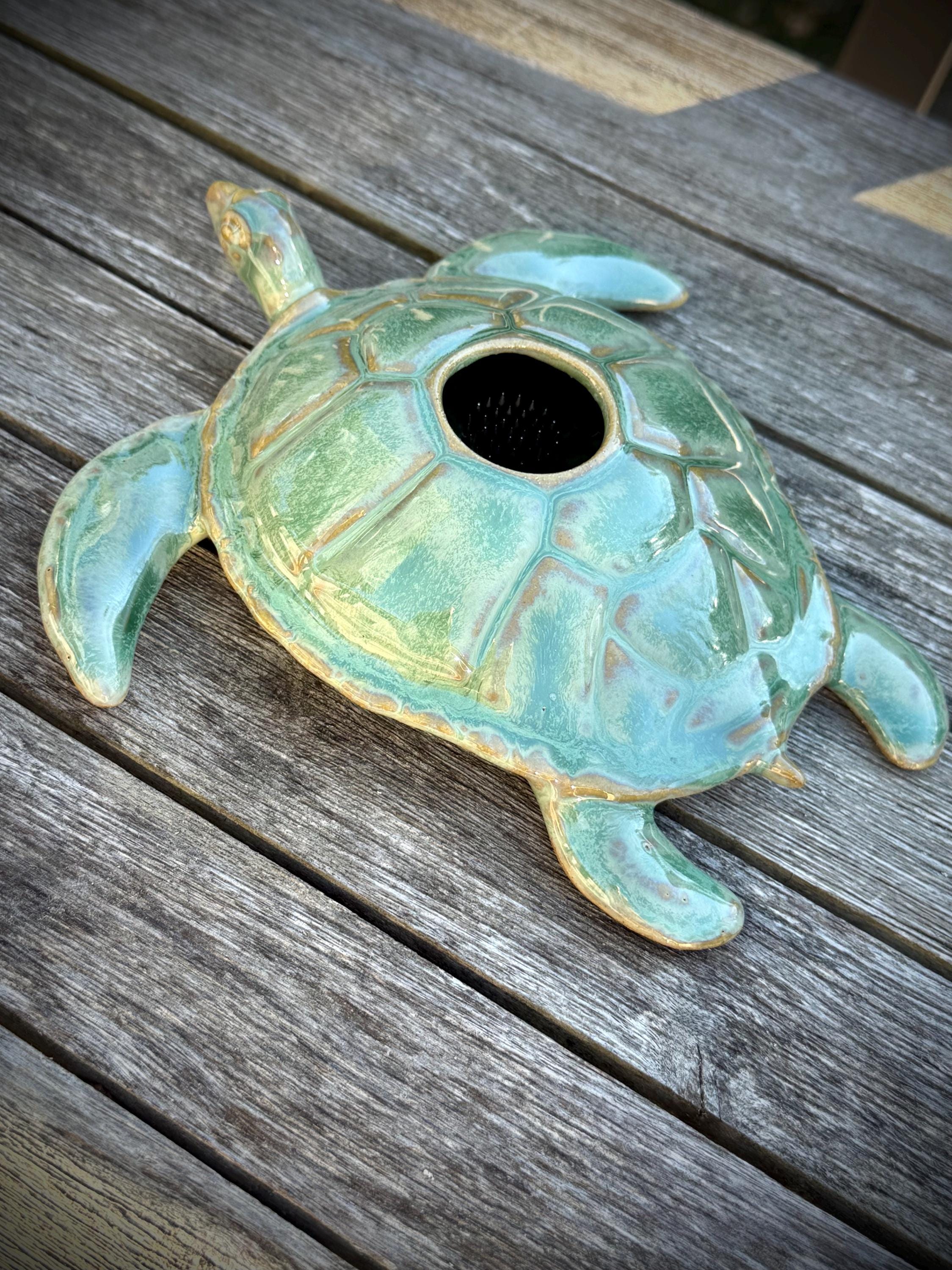 Ikebana, Sea Turtle Flower Vase, ceramic sea turtle sculpture for Flower Arranging, Pin frog, fresh cut flower centerpiece
