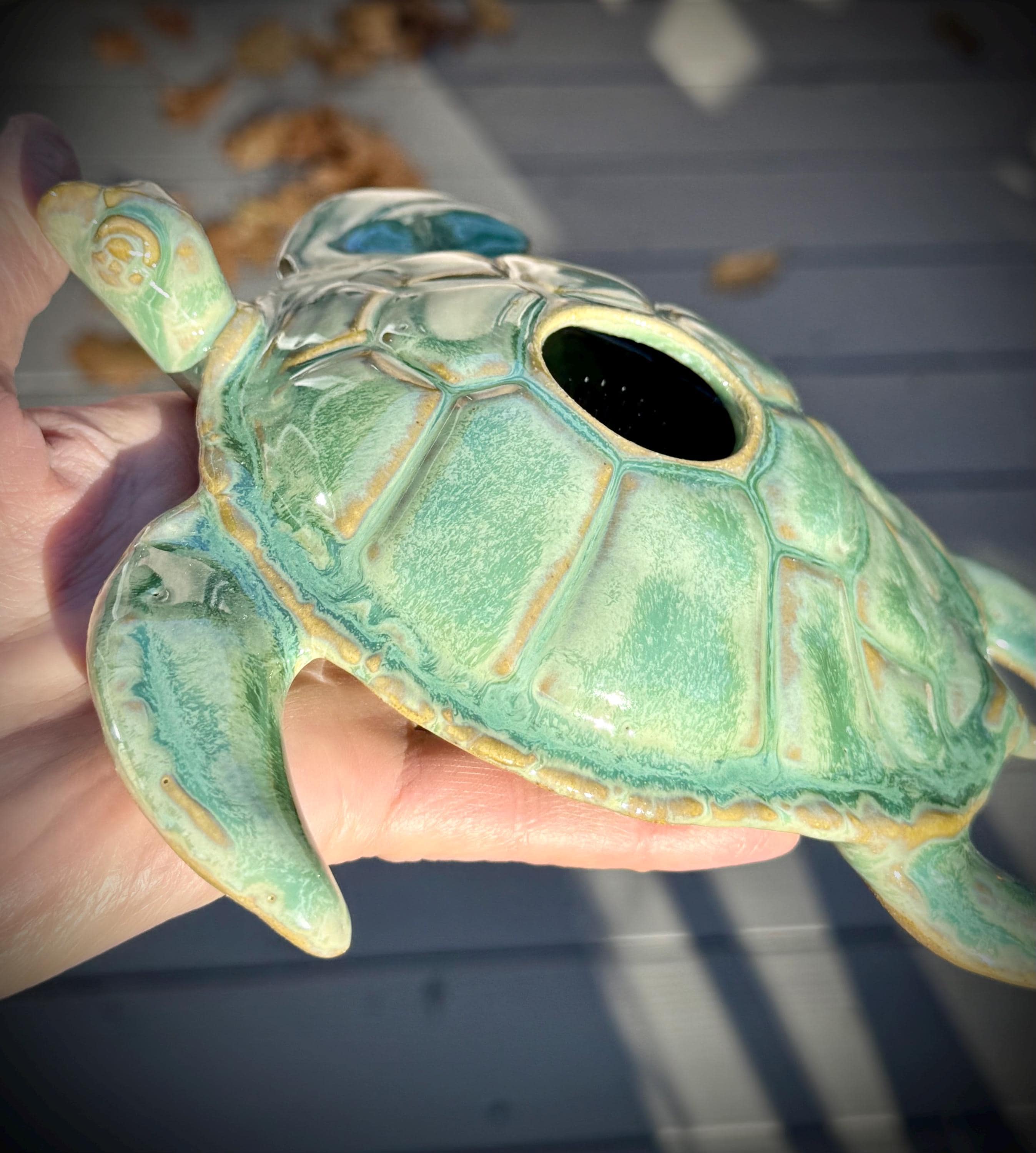 Imagine placing this exquisite vase on a countertop, table, or shelf, instantly transforming the atmosphere of any room. Whether you choose to fill it with delicate wildflowers, vibrant garden roses, or elegant orchids, the Sea Turtle vase will enhance their beauty while adding an artistic touch to your decor.