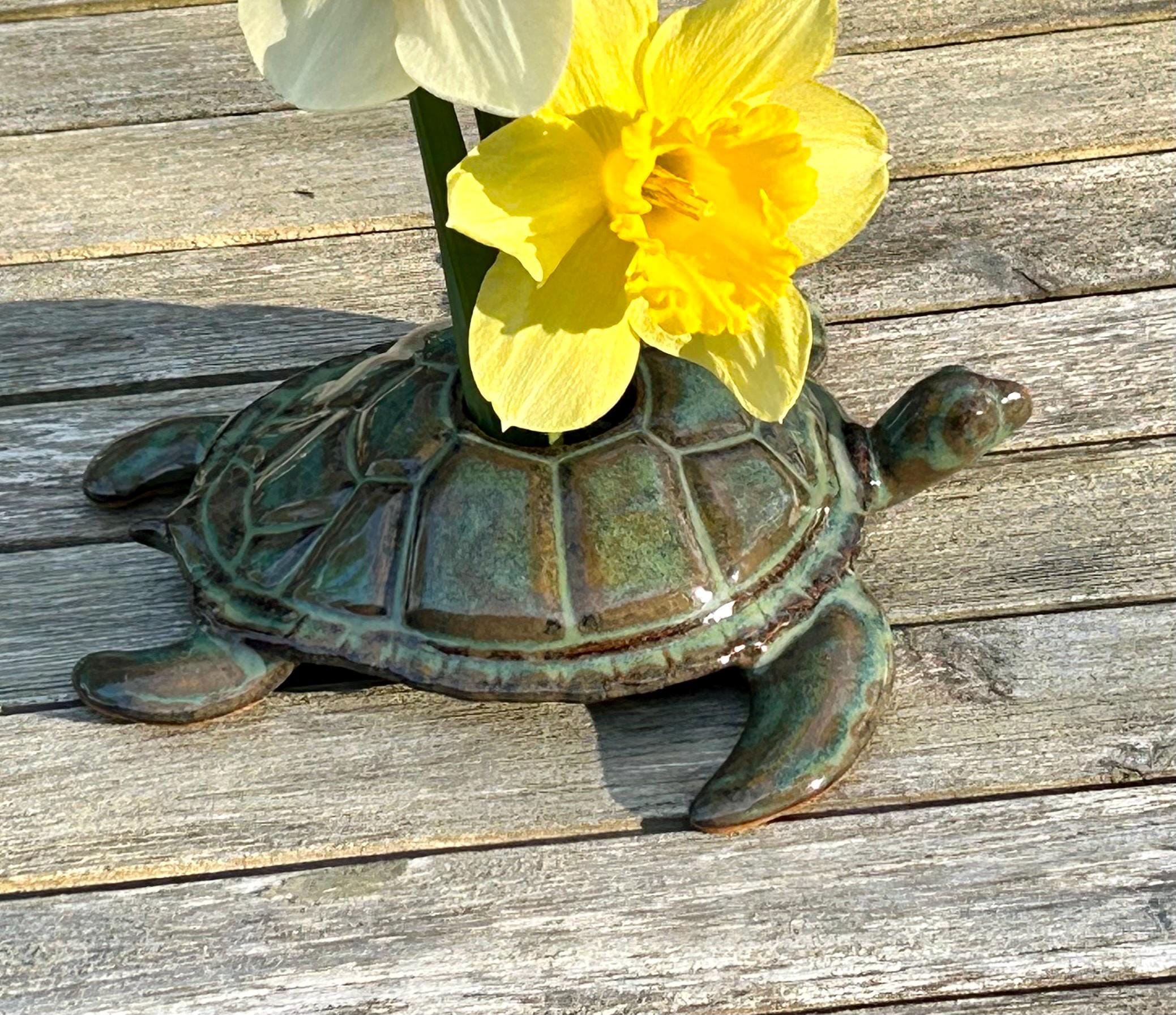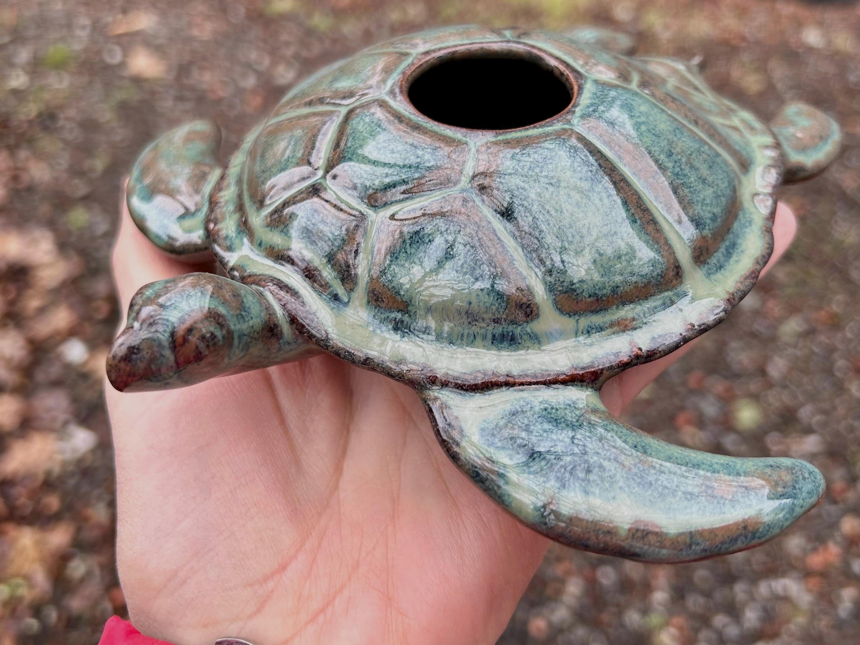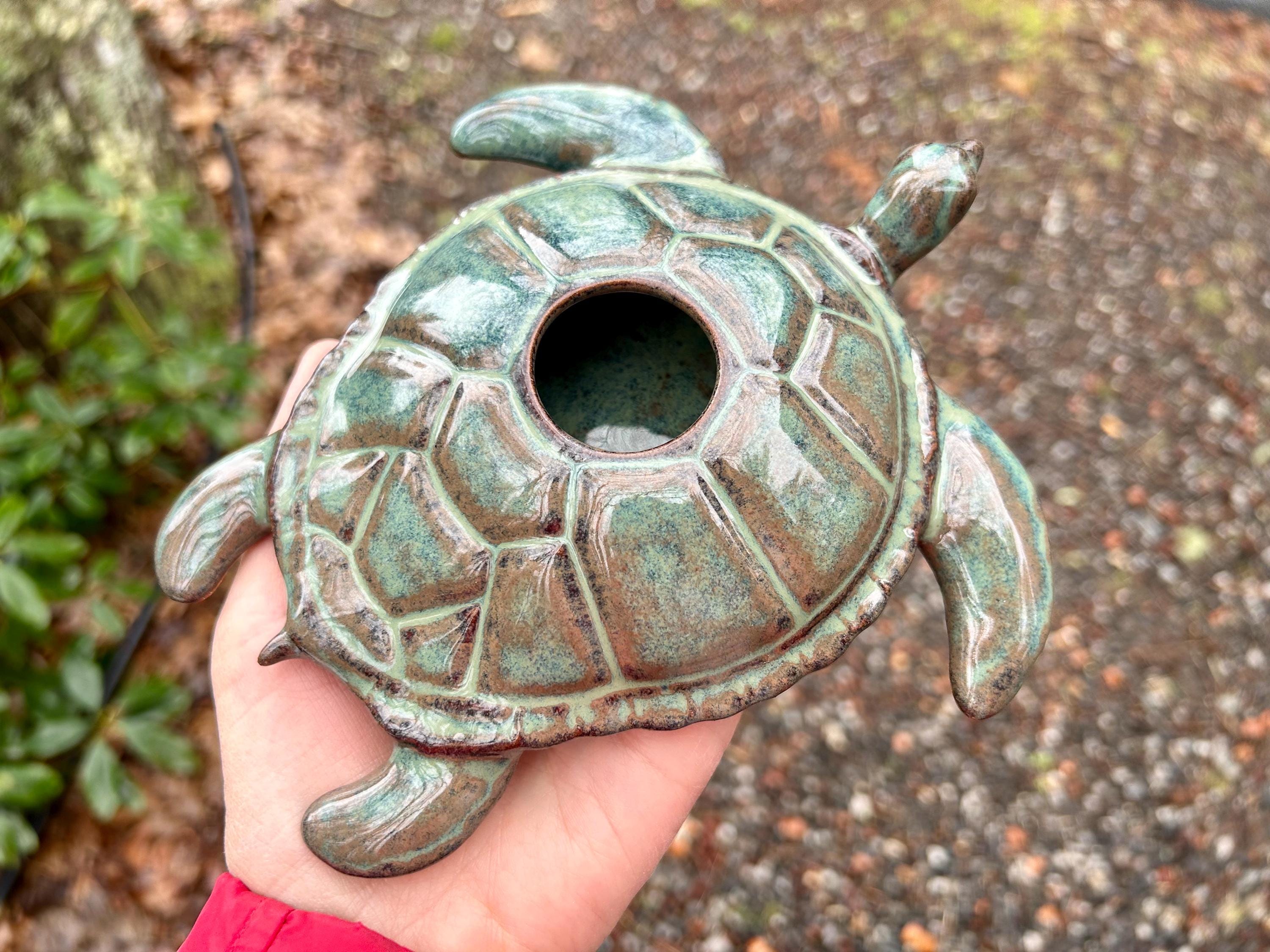 Ikebana, Sea Turtle Flower Vase, ceramic sea turtle shaped vase for Flower Arranging, Pin frog, fresh cut flower centerpiece