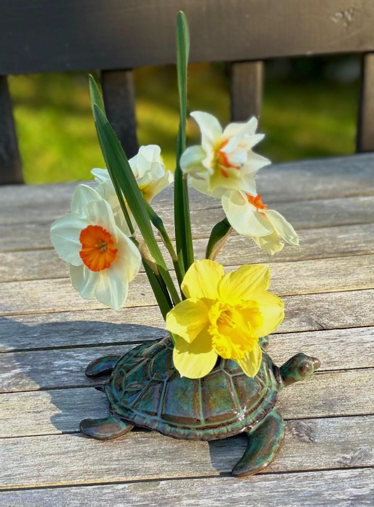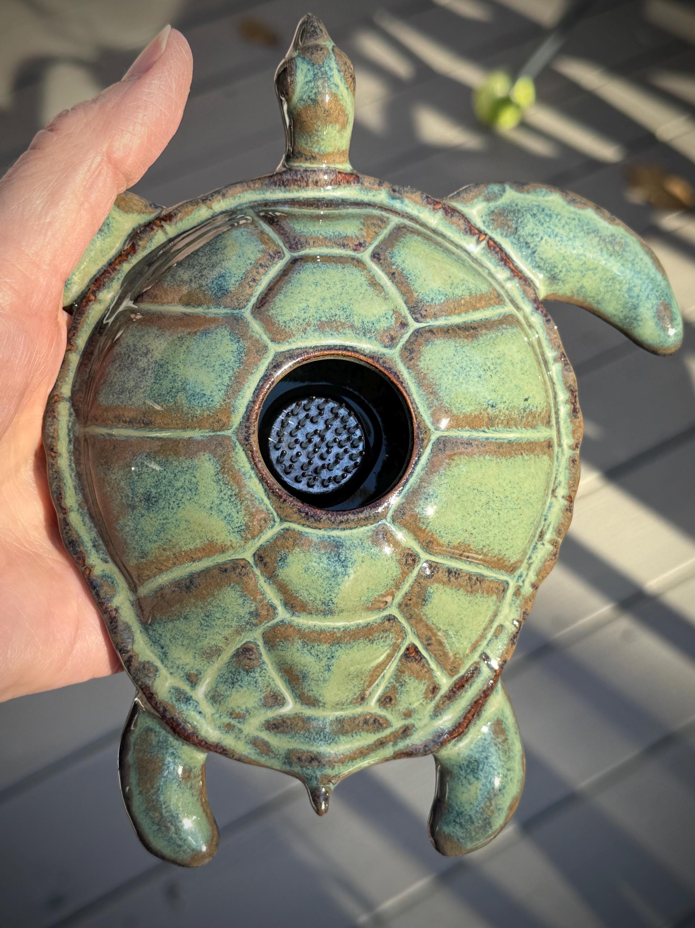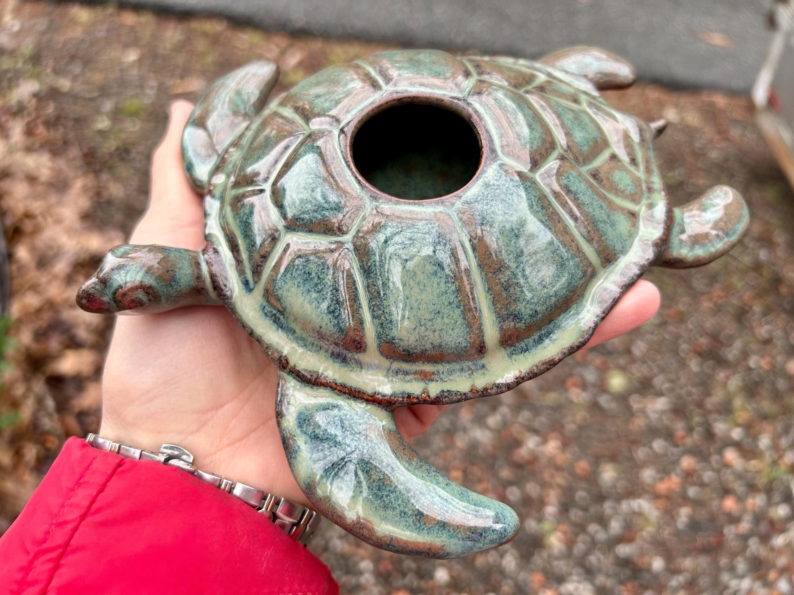 Ikebana, Sea Turtle Flower Vase, ceramic sea turtle shaped vase for Flower Arranging, Pin frog, fresh cut flower centerpiece