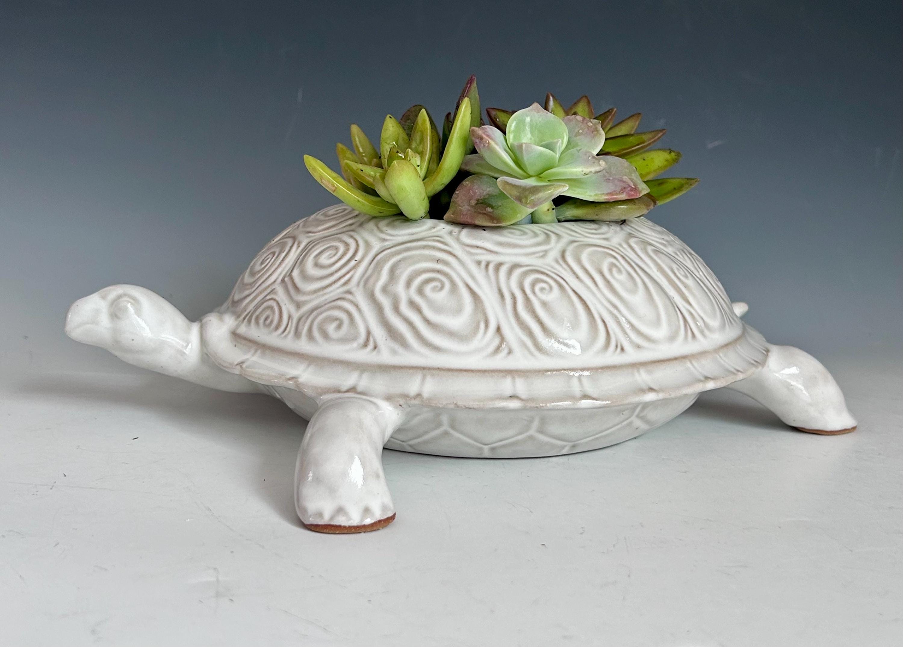 - Transform your space with this exquisite stoneware turtle planter, this versatile piece is perfect for showcasing beautiful flower arrangements, planting your favorite houseplant or succulents.