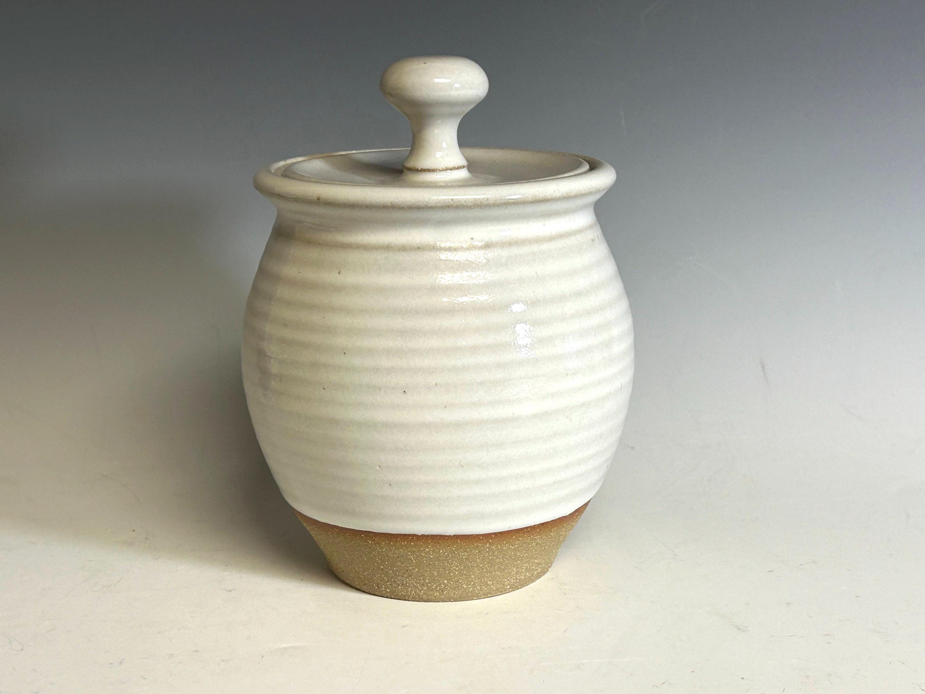 Sugar Jar, farmhouse style White storage container, Handmade Stoneware pottery, pet treat keeper