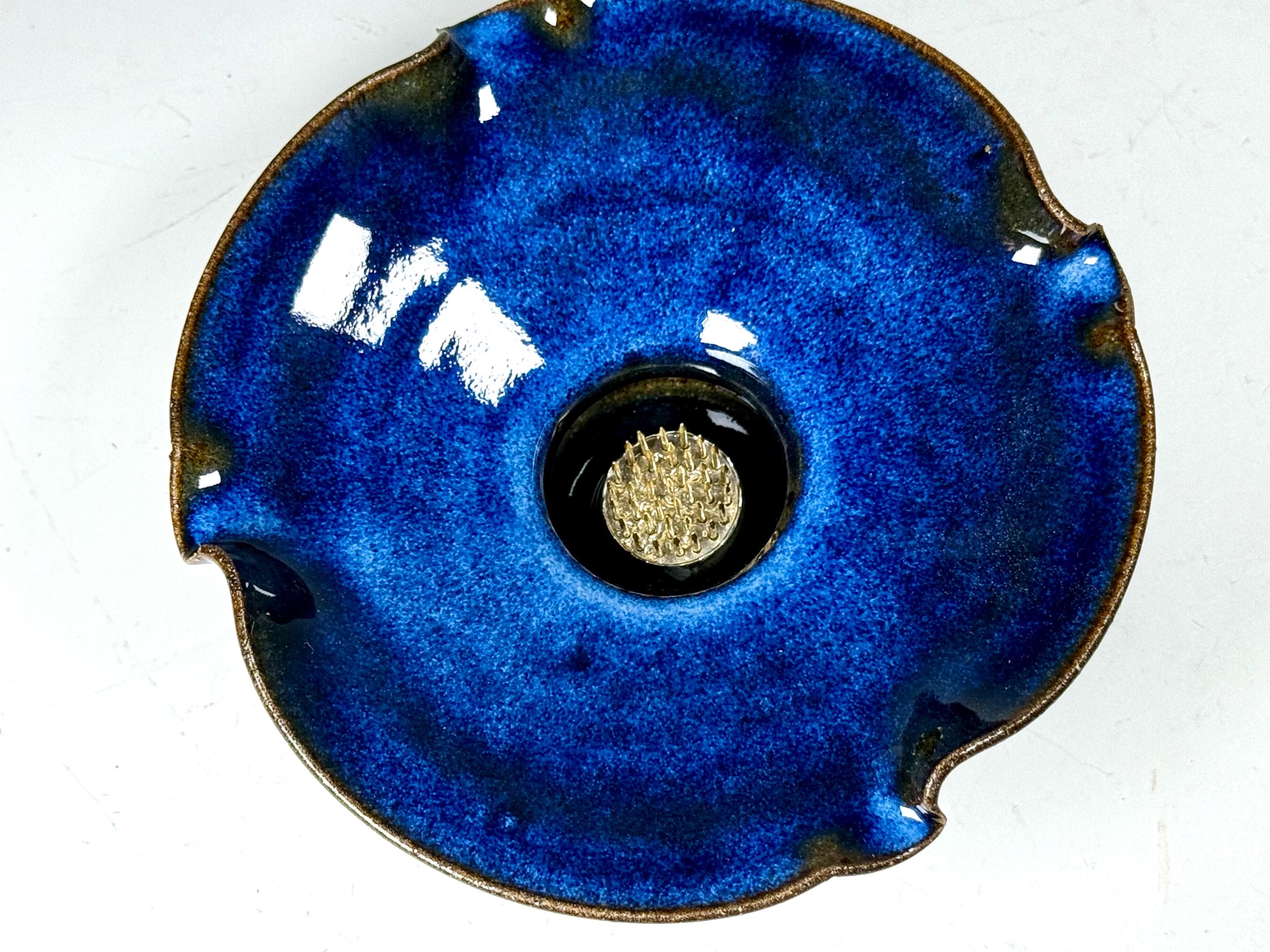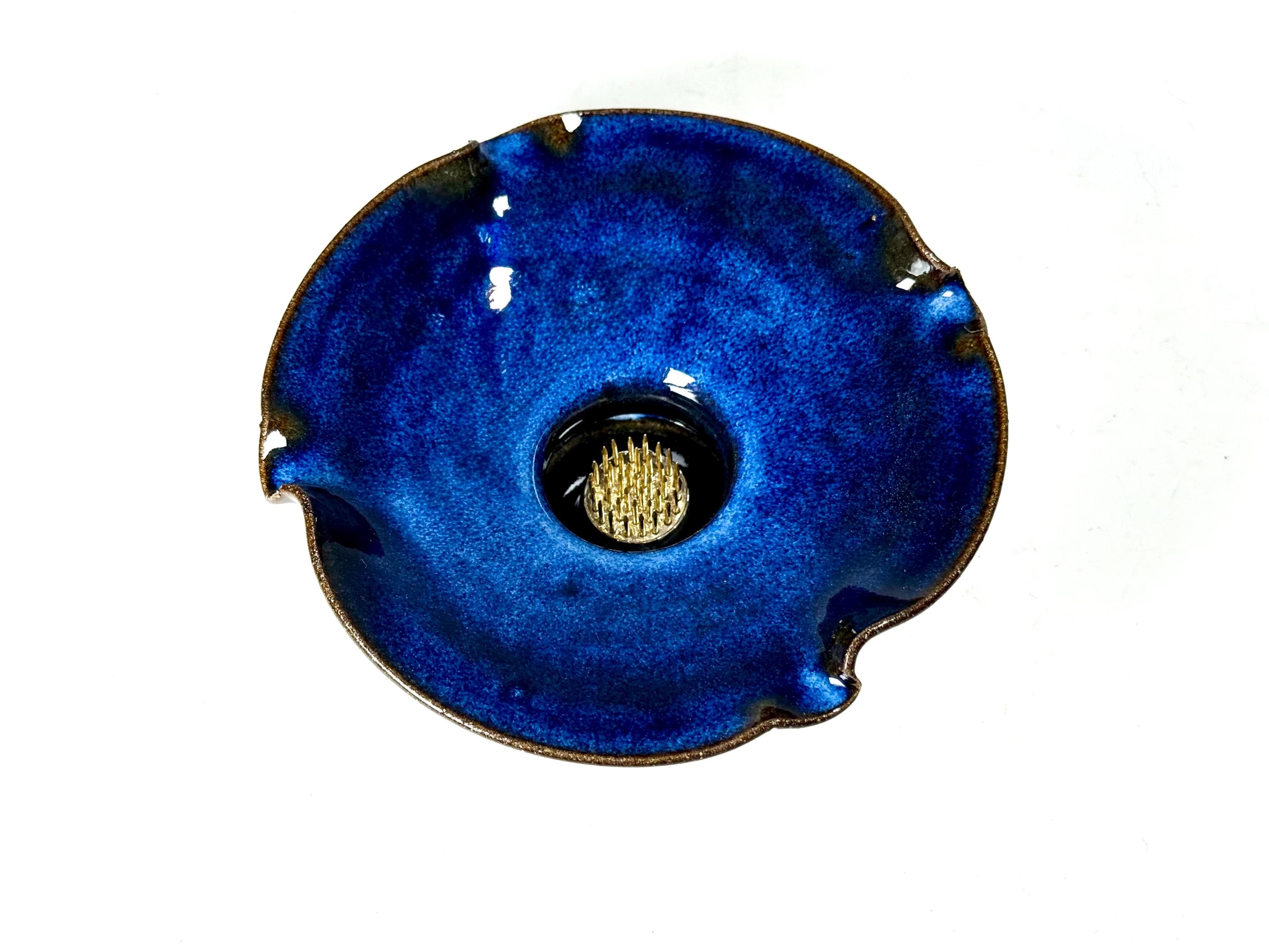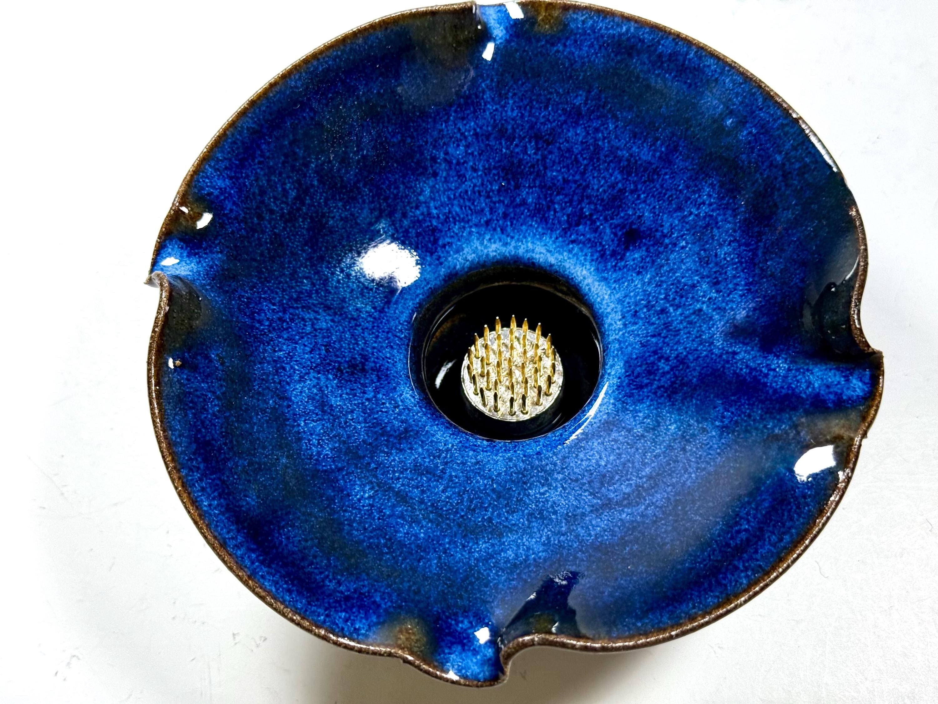 Ikebana with Pin Frog, Japanese Style Flower Arranging Vase, centerpiece, Handmade Pottery Open Flower Bowl, stoneware Pottery vase with Floral frog, also called Kenzan