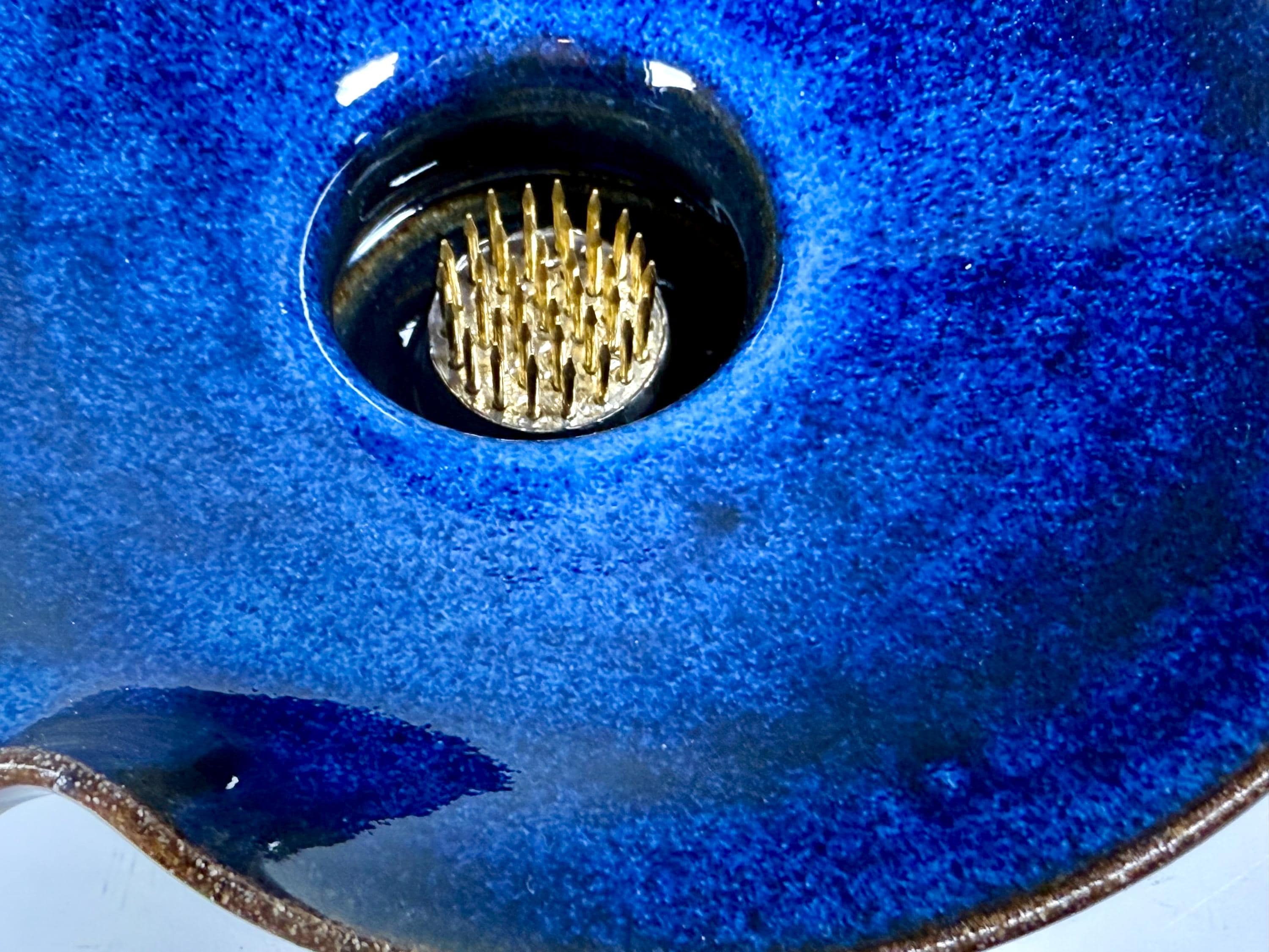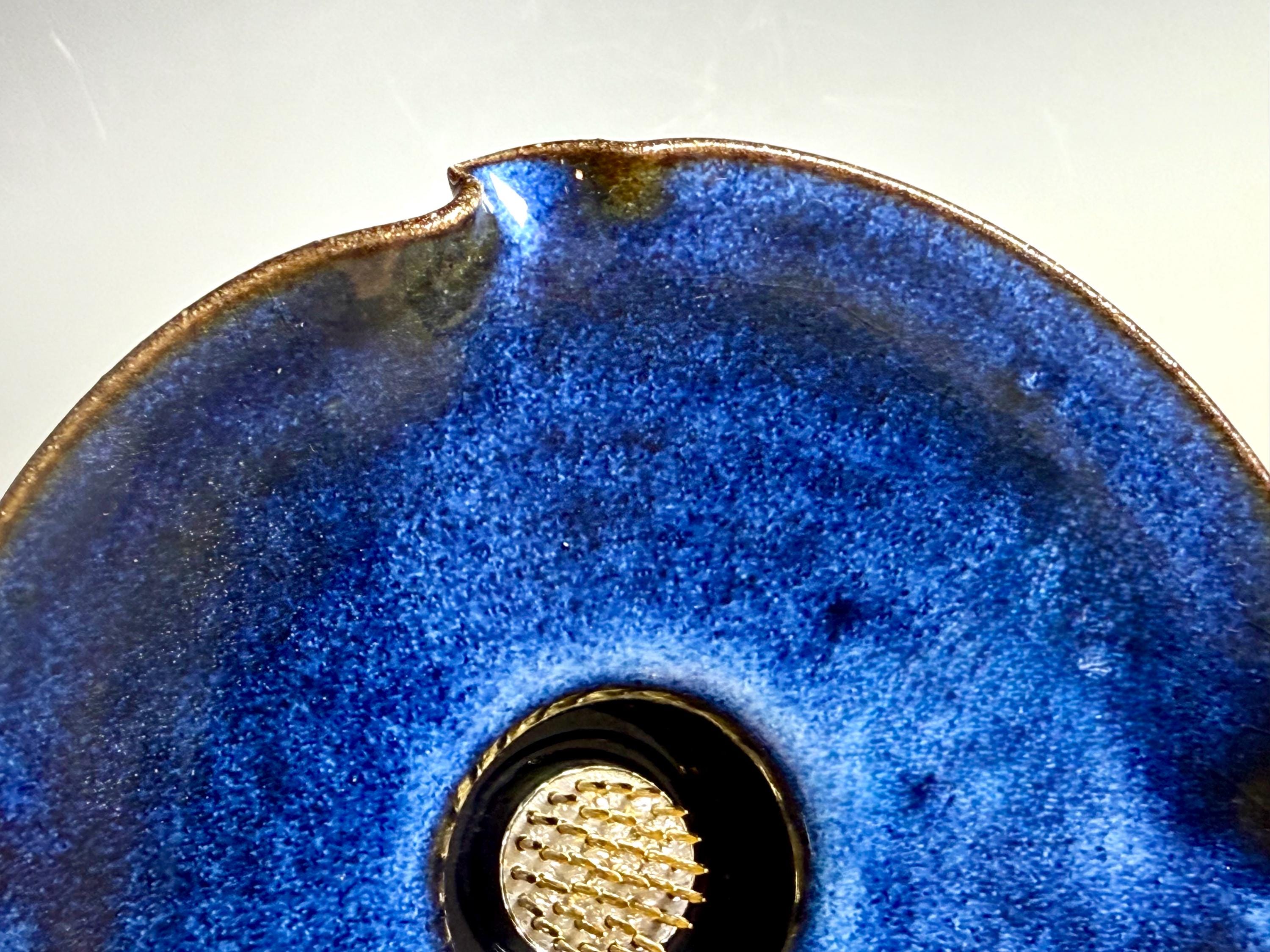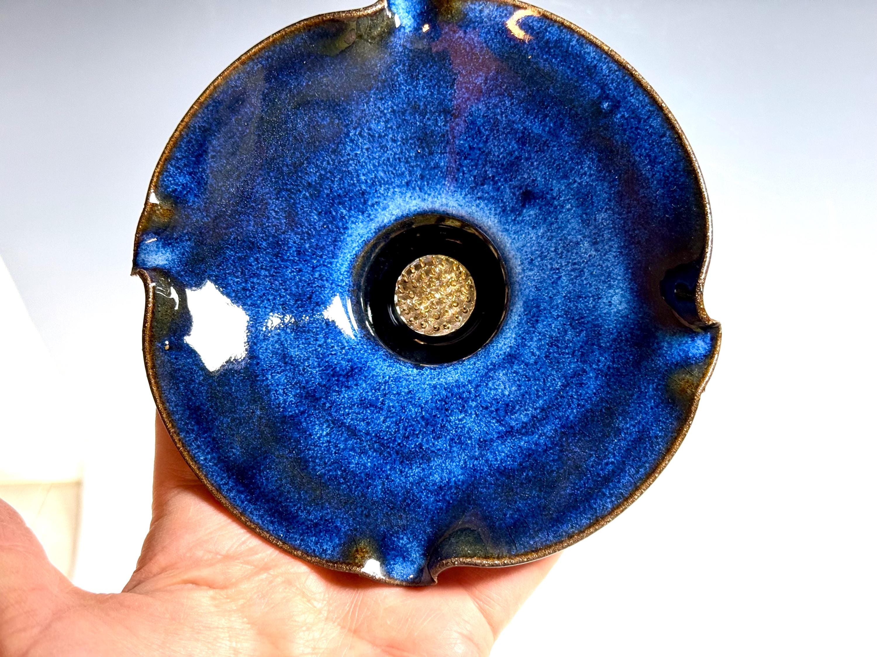 Our open Bowl Ikebana is hand thrown and high fired porcelain and stoneware. Our work is fired in reduction and oxidation atmosphere, allowing our specially formulated glazes to react and melt, move and develop fabulous color, creating true unique one of a kind pieces.