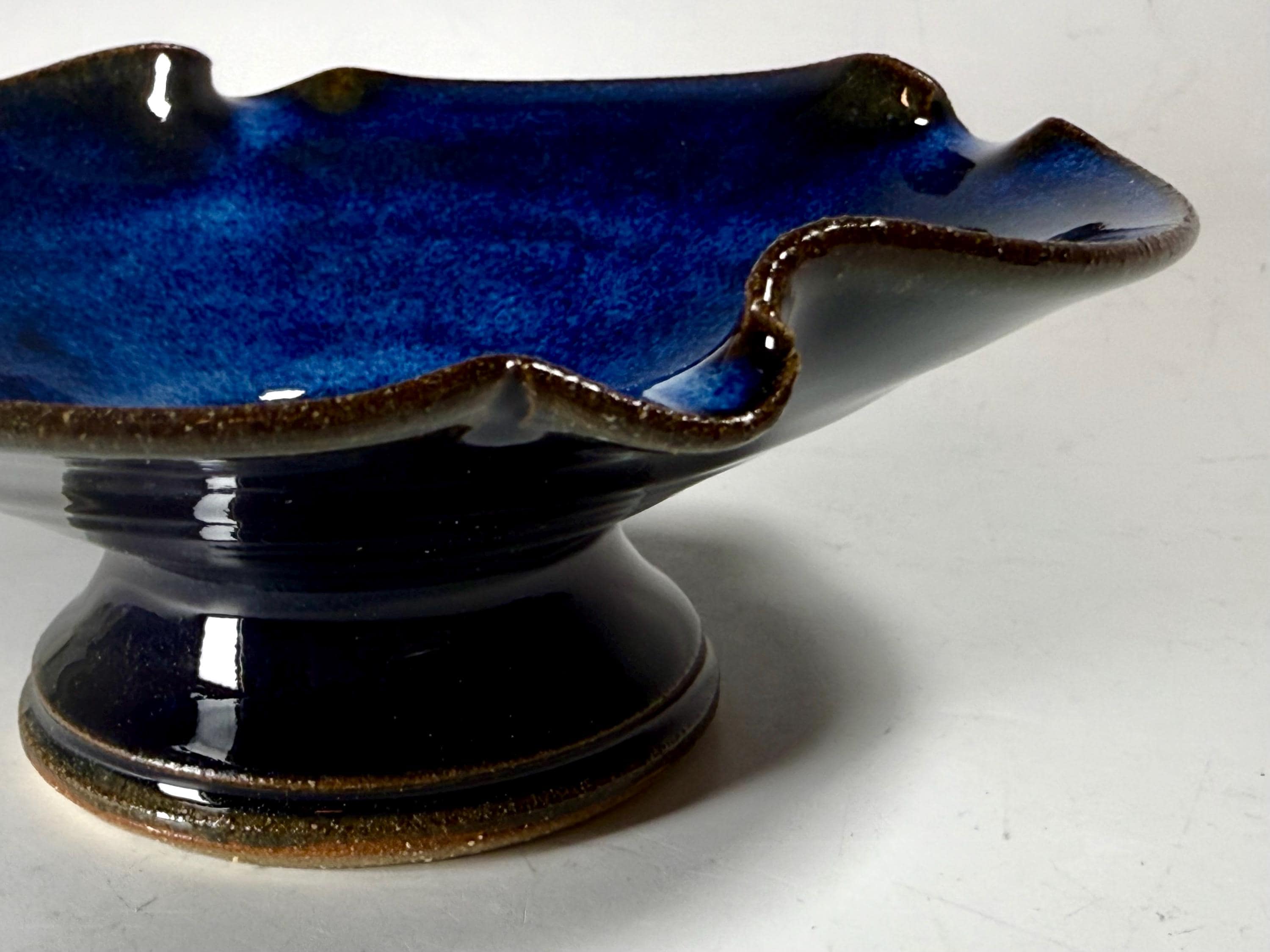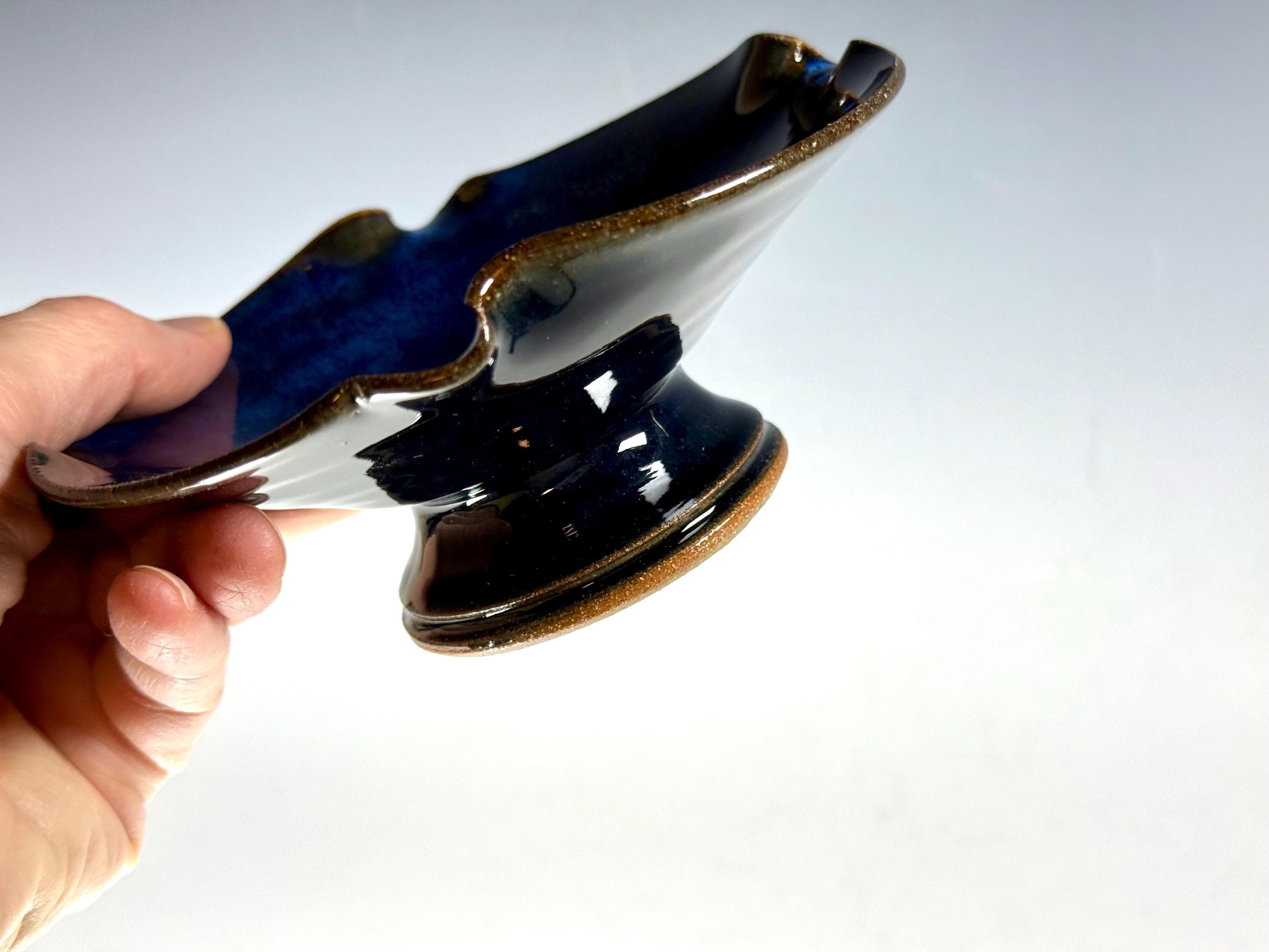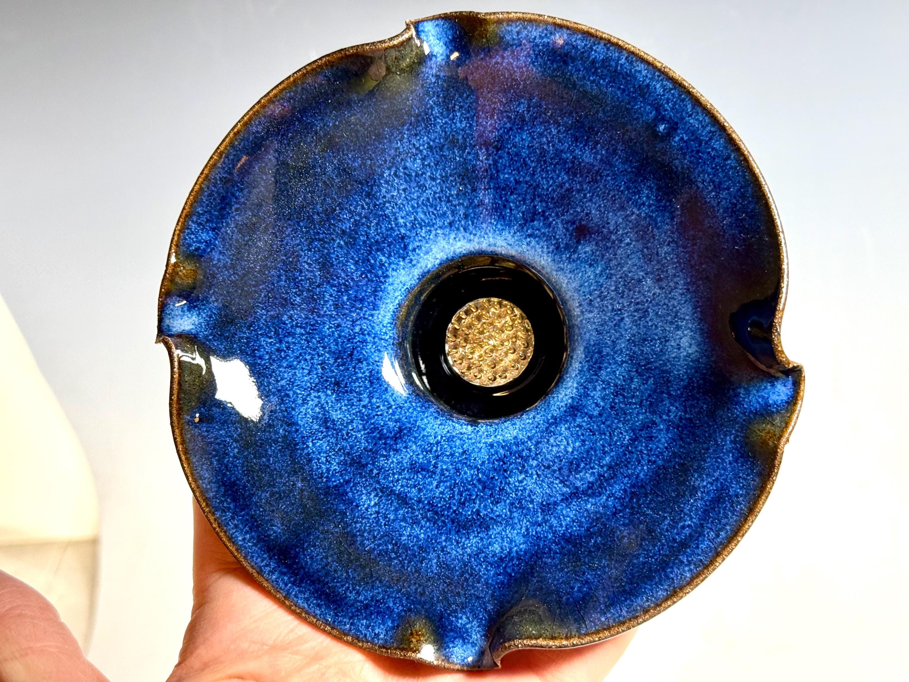 Our open Bowl Ikebana is hand thrown and high fired porcelain and stoneware. Our work is fired in reduction and oxidation atmosphere, allowing our specially formulated glazes to react and melt, move and develop fabulous color, creating true unique one of a kind pieces.