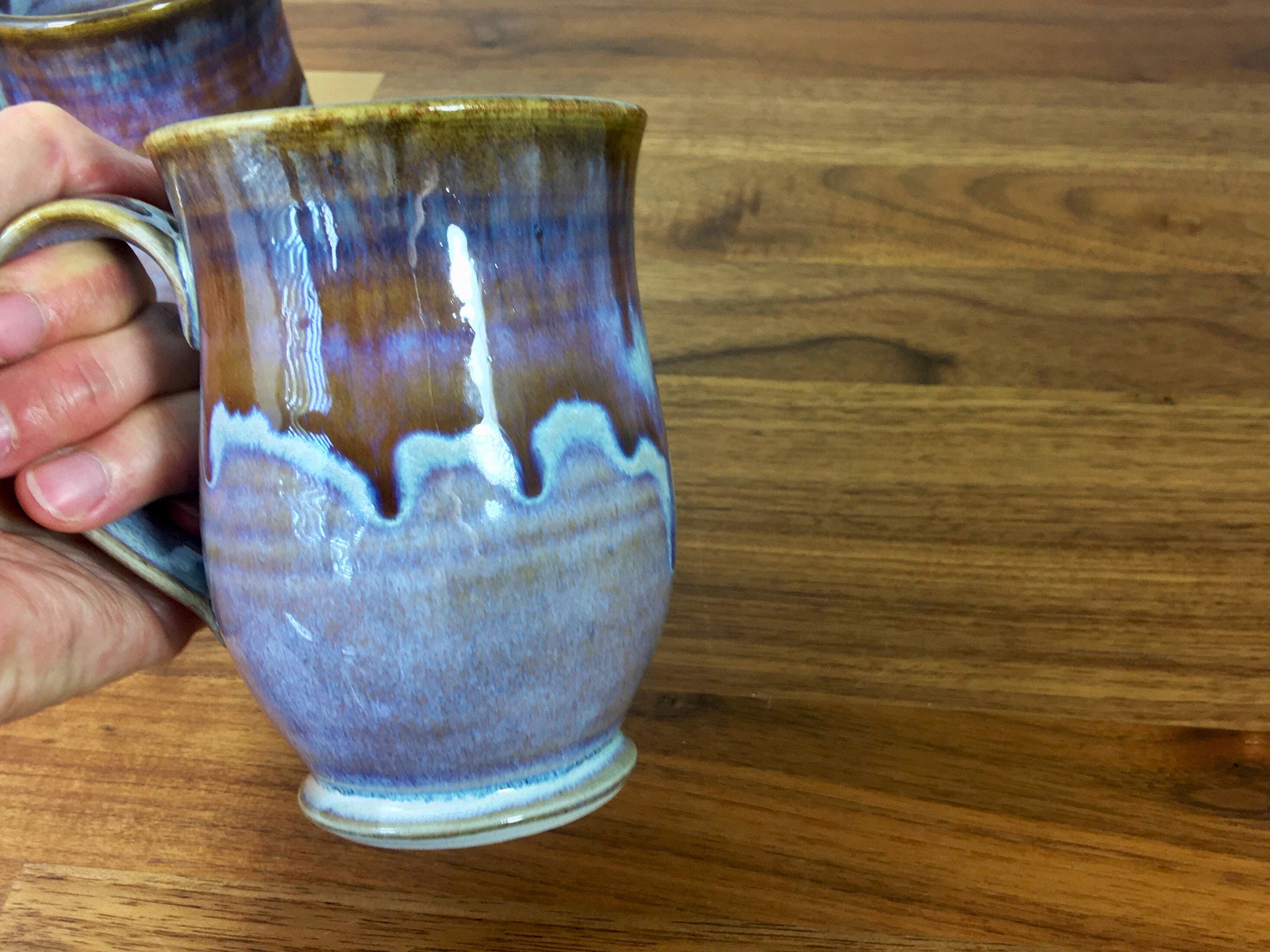 Large handmade and wheel thrown 12 oz pottery Mug, cup, stoneware coffee mug, handled hot or cold beverage cup, drink mug, Art drip glaze pottery mug. Always well received when given as a gift.